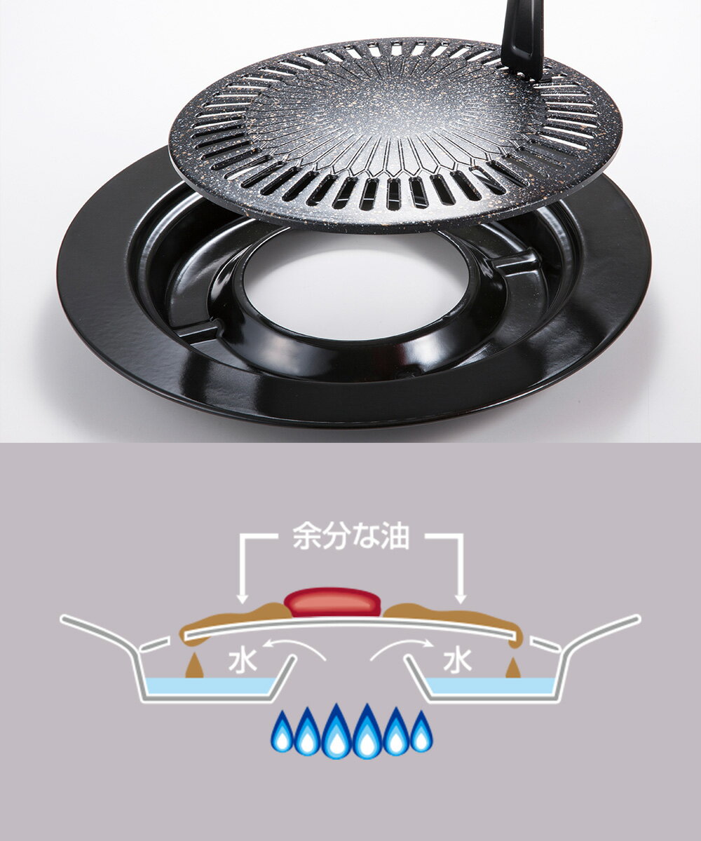 カラダにうれしいヘルシー焼肉焼肉グリルプレートは余分な油が本体の受け部へ落ちるので、ヘルシーに調理ができます。