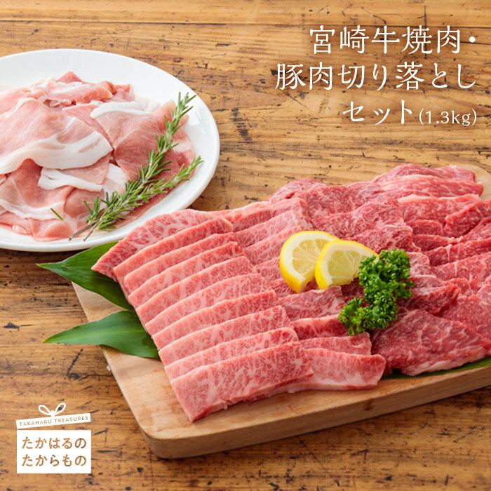 【ふるさと納税】宮崎県産特選 宮崎牛焼肉・豚肉切落としセット(1.3kg) -霧島が育んだ和牛&黒豚- 締まりが良くきめ細やかで柔らかな食感 ブランド牛ランキング常連 豚肉切り落としはパック詰めの小分け クール便で新鮮お届け ※送料無料