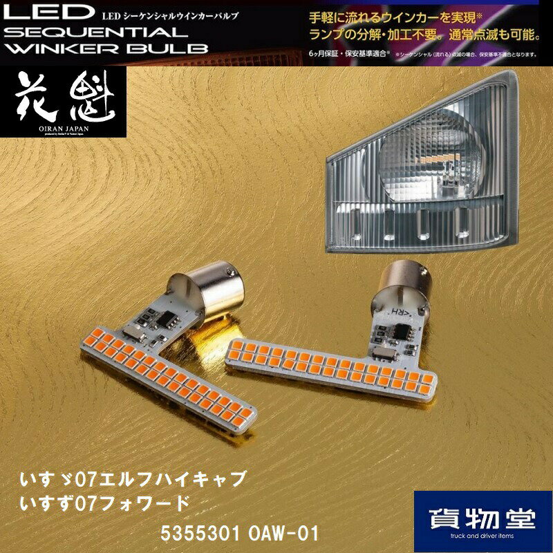 OAW-01 花魁 LEDシーケンシャルウインカーバルブ いすゞ フロント用(左右セット) 【適合車種】 いすゞ07エルフ ハイキャブ・ワイド 注:ローキャブは不可 いすゞ07フォワード 純正ウインカーバルブを交換するだけでシーケンシャルウインカーを実現する製品です。